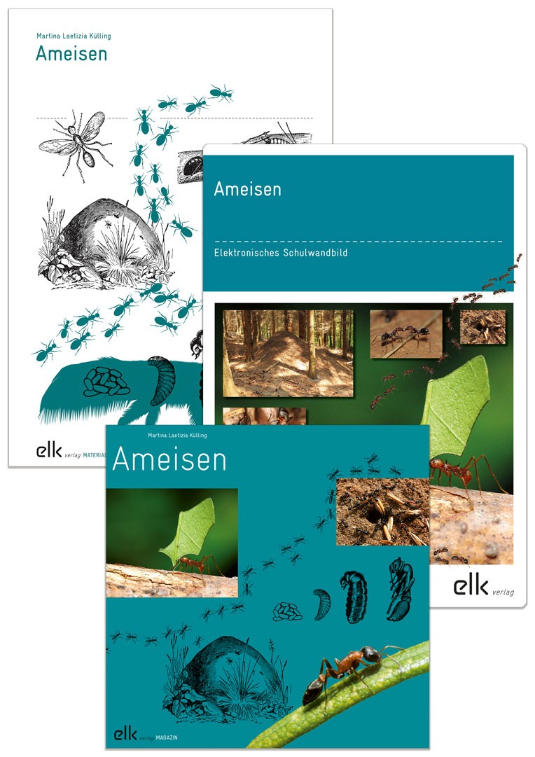 Mit diesem Paket erarbeiten sich die Schüler*innen ein breites Wissen über die Merkmale, Lebensweise und Besonderheiten der Ameisen. Die kurzen Texte im Magazin (Versand per Post), die grossformatigen Bilder und Filme im Elektronischen Schulwandbild (Versand per Post) sowie die Arbeitsblätter im Ordner führen sie durch das Thema und ermöglichen selbstständiges und individuelles Lernen.