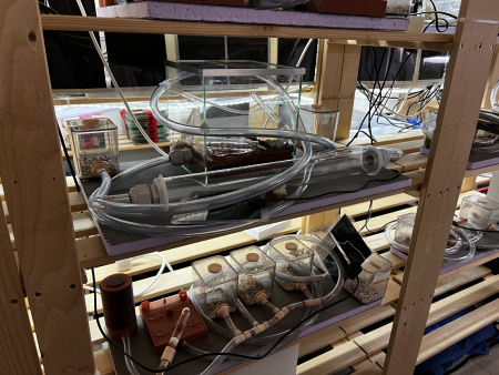 Die Kinder haben riesengrosse Freude an der Ameisenkolonie und es gibt so viel Spannendes zu beobachten. Die ersten zwei Tage waren die Ameisen kaum sichtbar – vielleicht noch etwas irritiert von der Fahrt. Ich habe dann im Kindergarten ein Tuch darüber gelegt, und heute Morgen waren alle Eier in den Tunnels. Die Königin hat ihr Nest ebenfalls verlassen und war beim Wasser, sie war dann auch in den Schläuchen unterwegs und ist bisher nicht ins Nest zurückgekehrt.